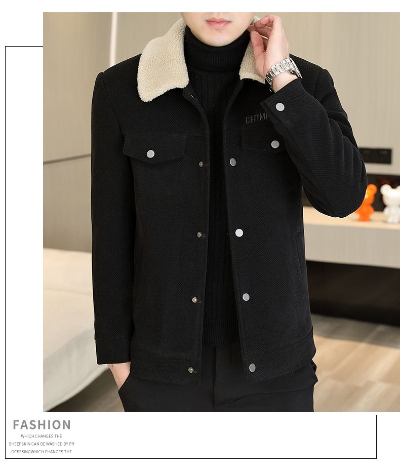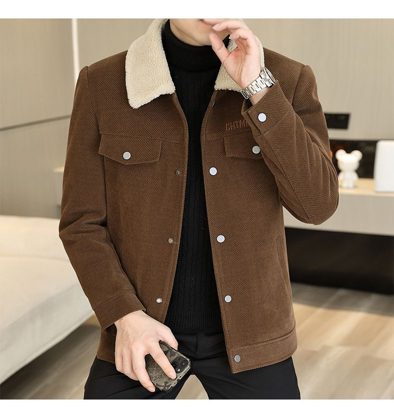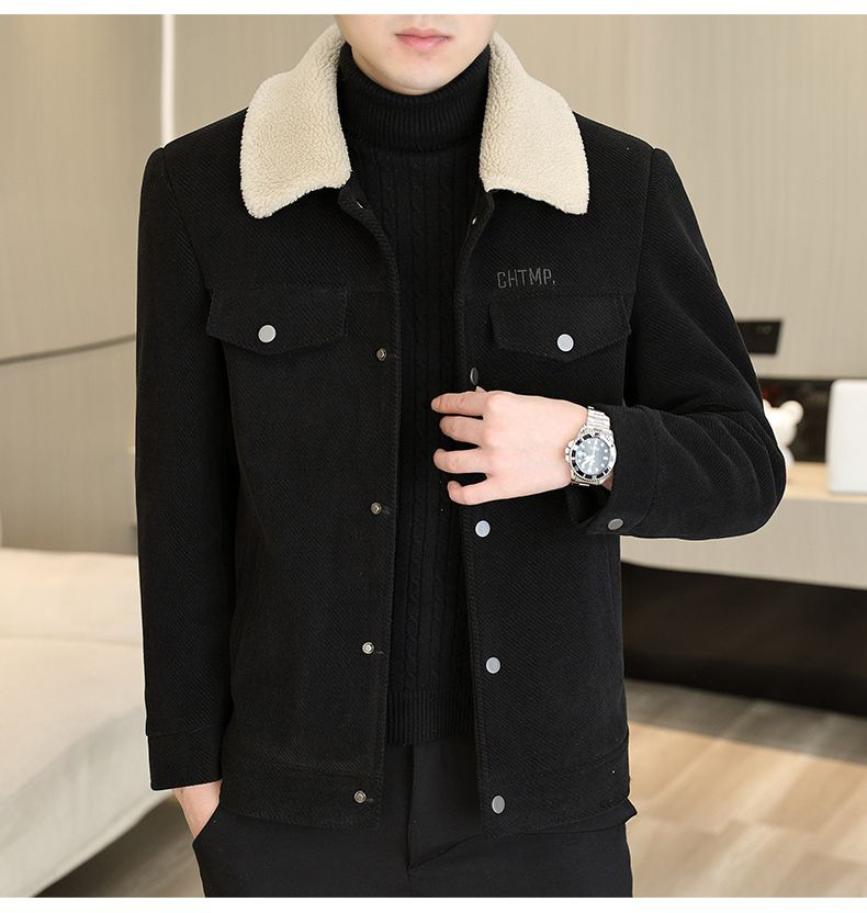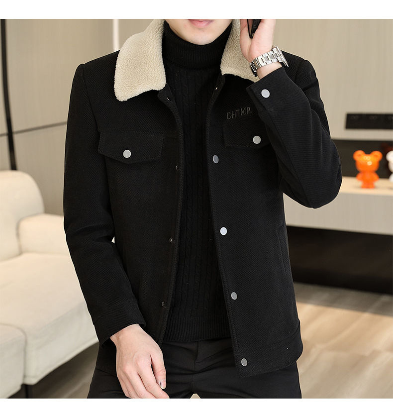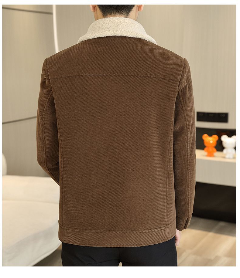 Men's Lapel Pure Color Ribbon Fur Collar Fleece Warm Jacket
