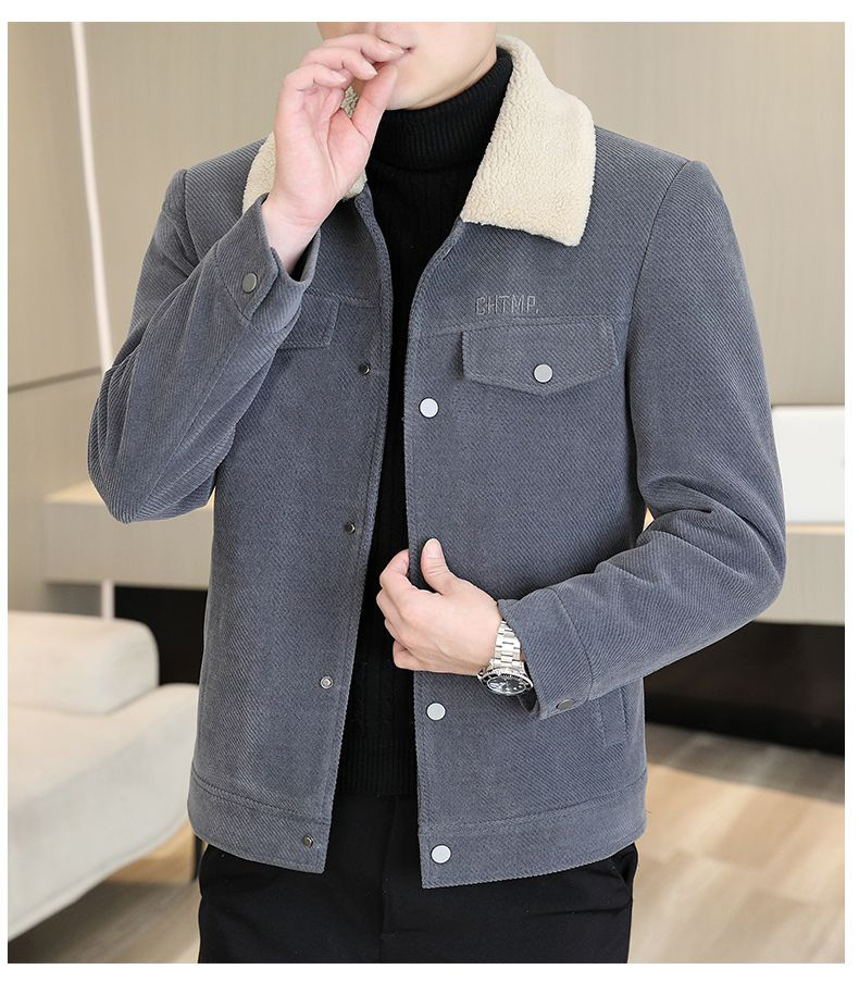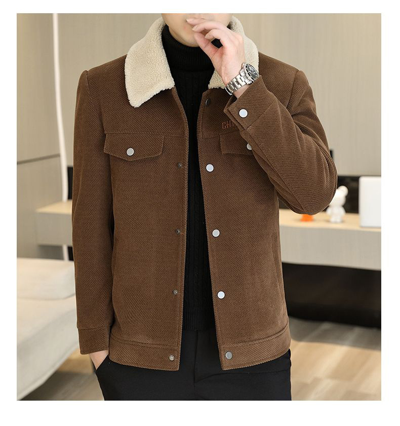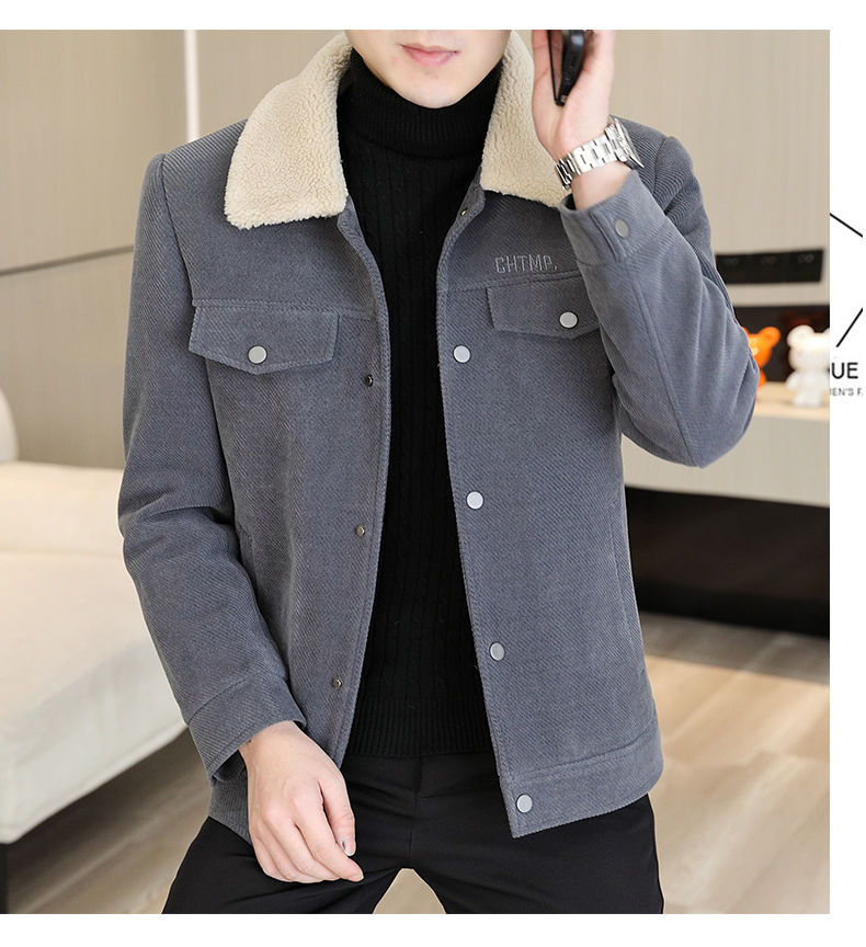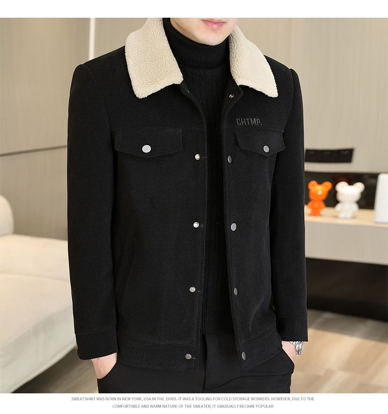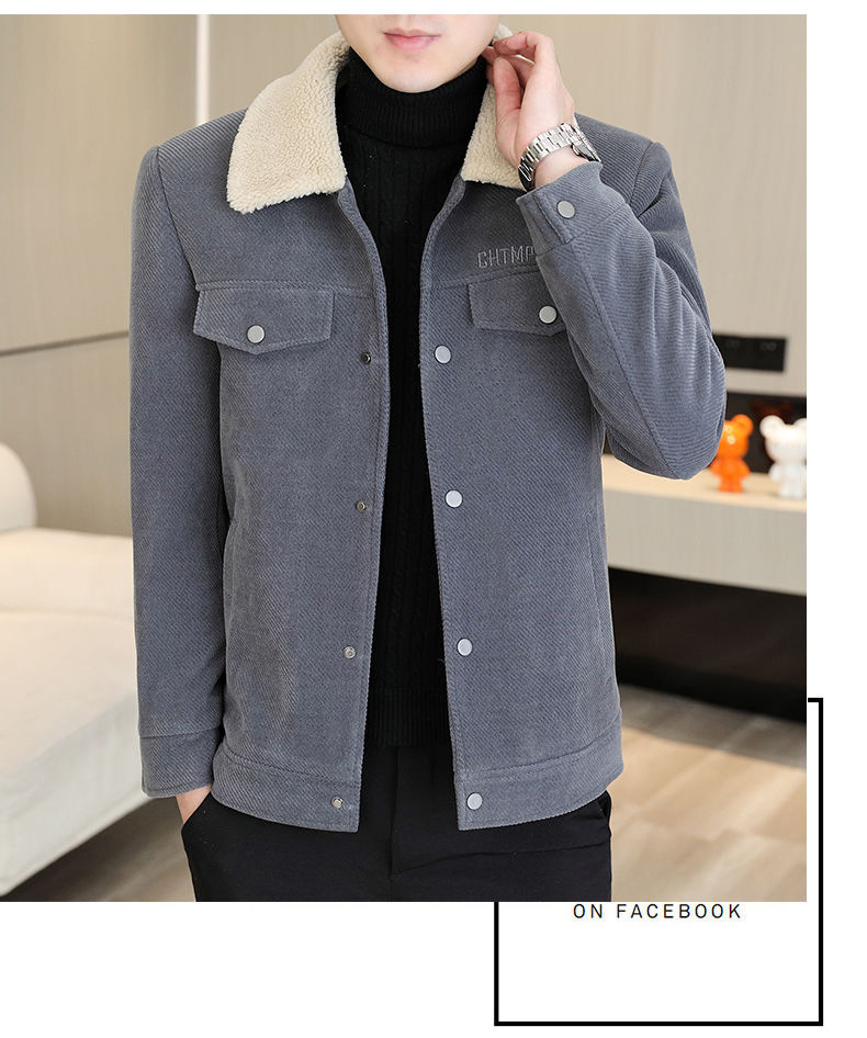 Men's Lapel Pure Color Ribbon Fur Collar Fleece Warm Jacket